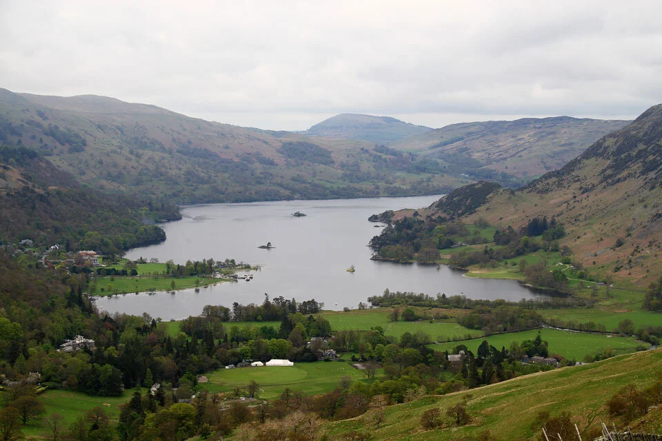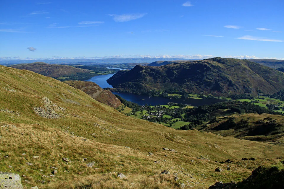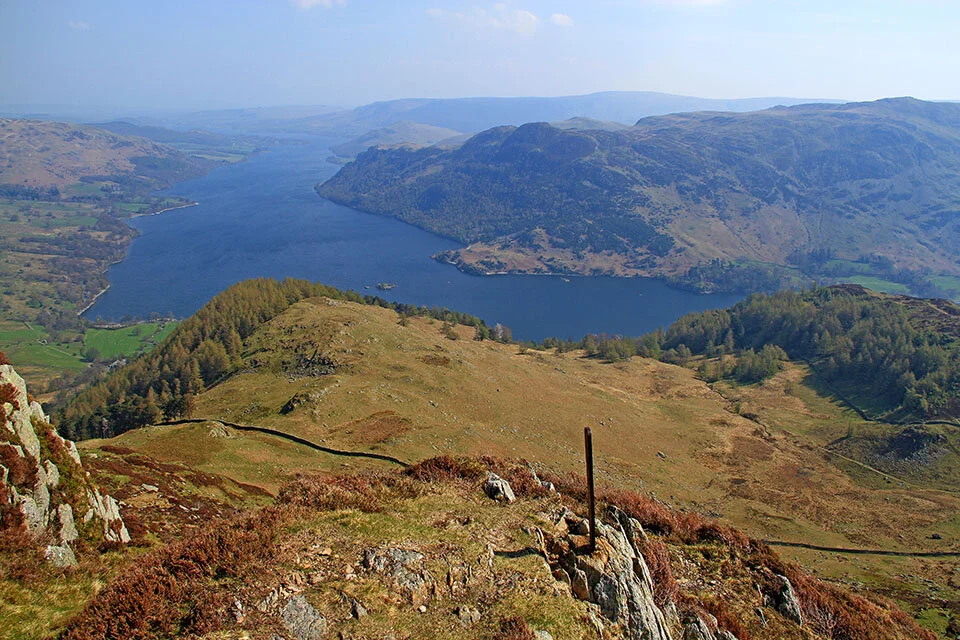 Ullswater is the second largest lake and one of the most popular. The southern end of the lake is enclosed by a dense mass of high fells. Views down to the lake can be seen from many of the nearby fell tops. Due to the size and shape of the lake, it is difficult to see it in whole.