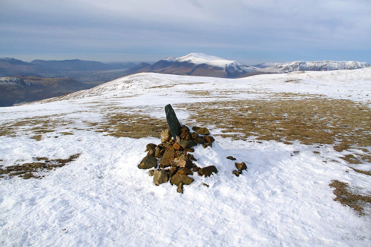 A view of Skiddaw from the summit with Watsons Dodd below.