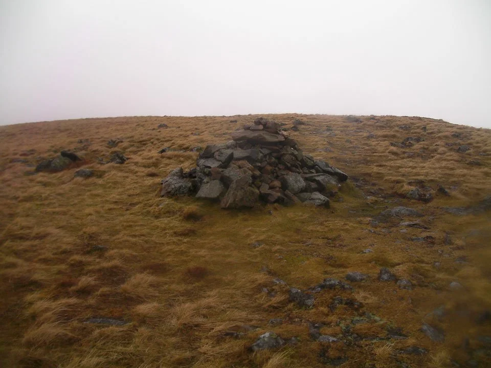 The Knott summit cairn with the Straits of Riggindale behind leading up to a cloudy High Street. Just after this photo the cloud descended for pretty much the rest of the walk until just below Gray Crag.