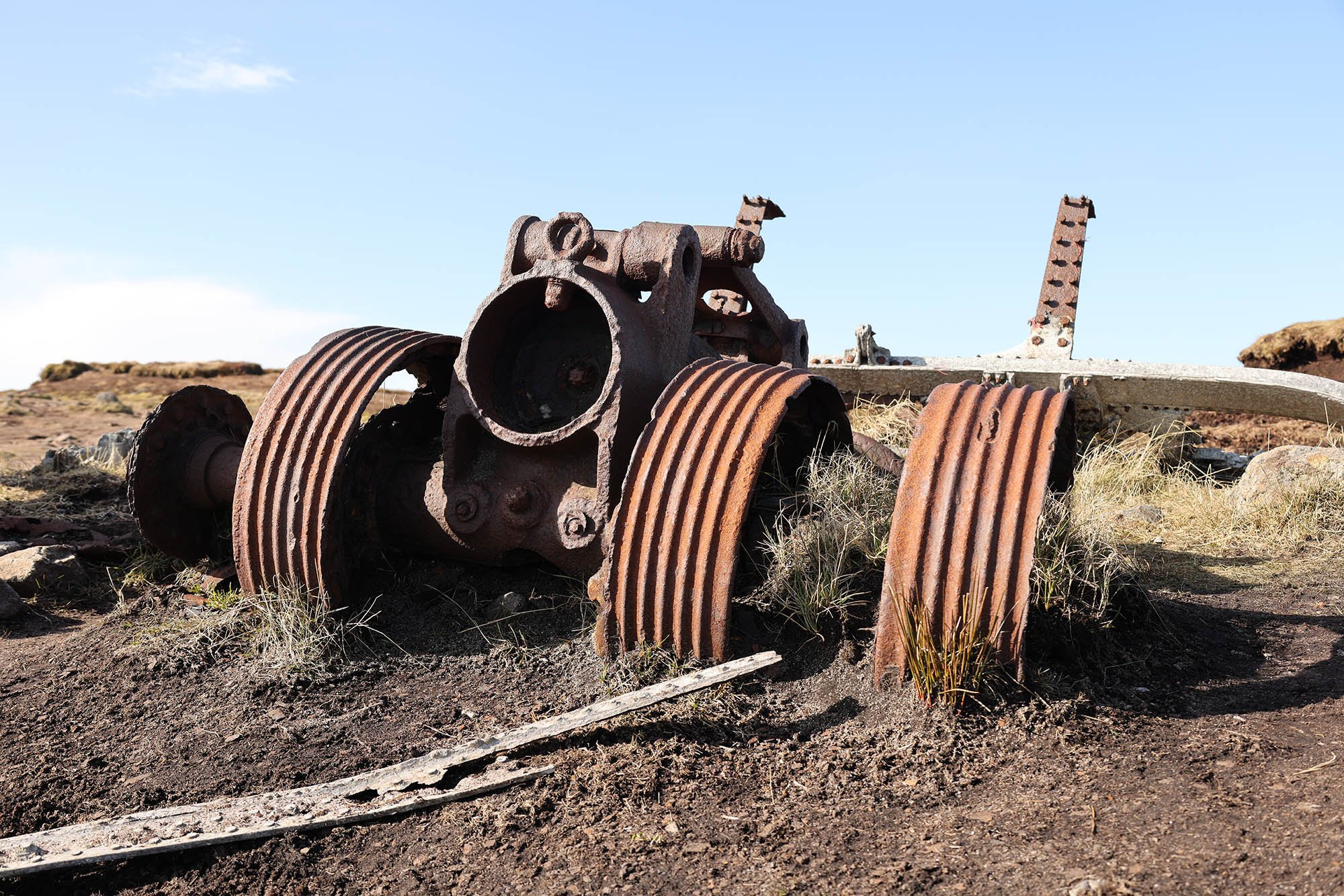 Exploring the wreckage just below the summit. Of all the times I have been here, this is the first time in the sunshine!