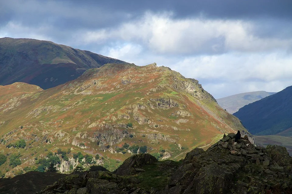 A mini summit with a mighty view. Thats Crinkle Crags and Bowfell on the skyline.