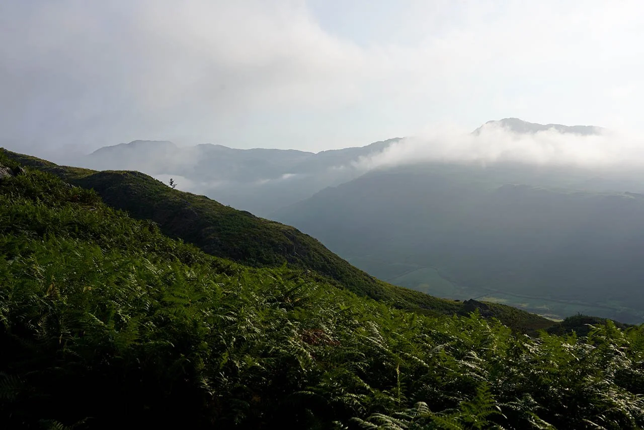 The view back. I ascended via the little valley on the far left. That’s Great How on the right.