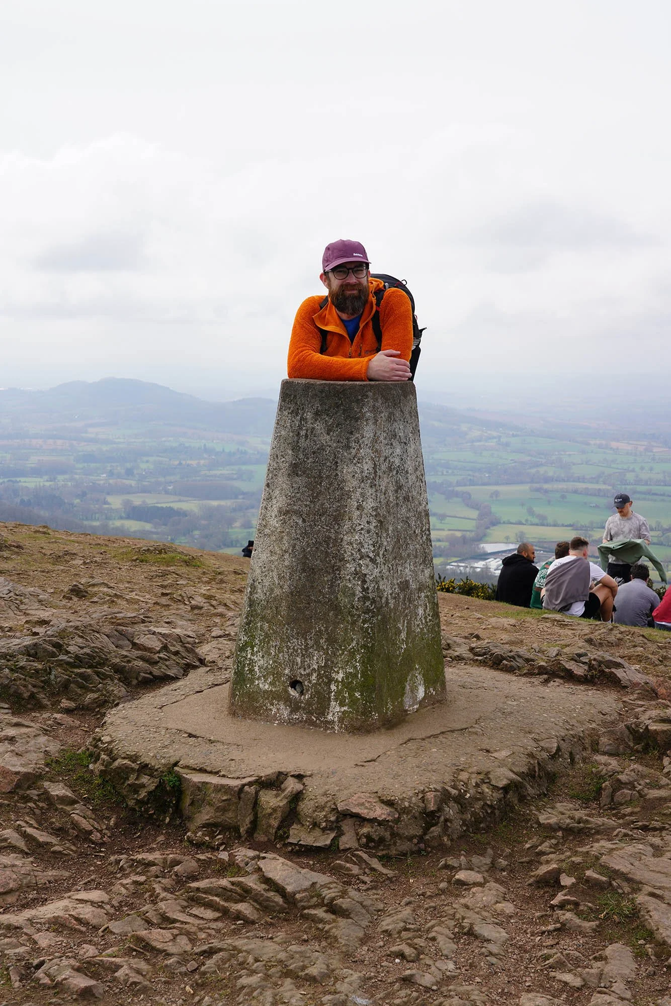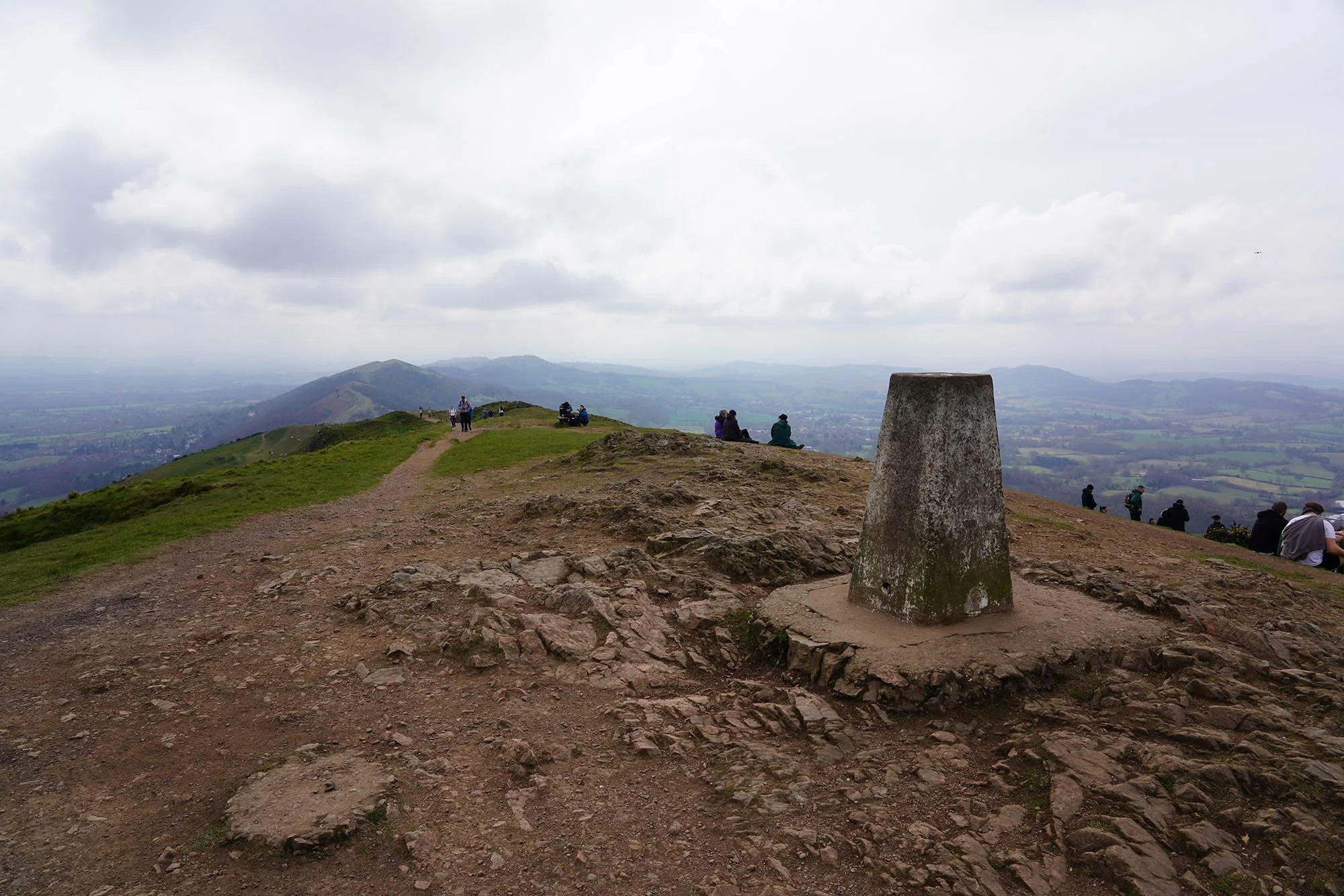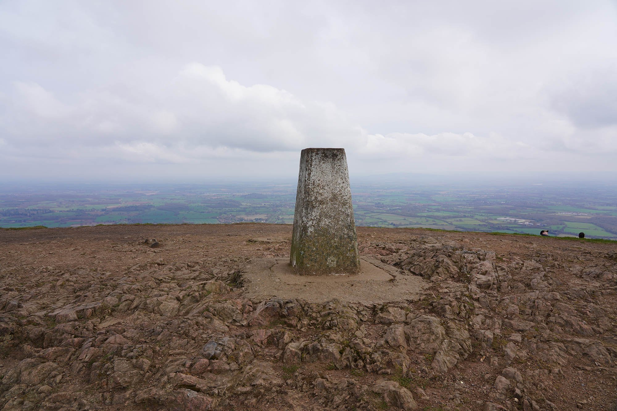 The trig point on Worcestershire Beacon at 425m above sea level.